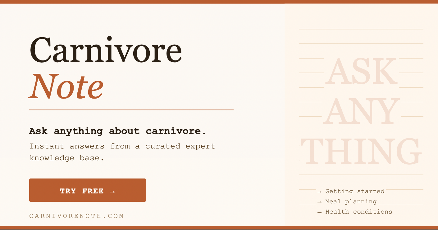 Your carnivore diet guide — powered by a curated knowledge base and AI